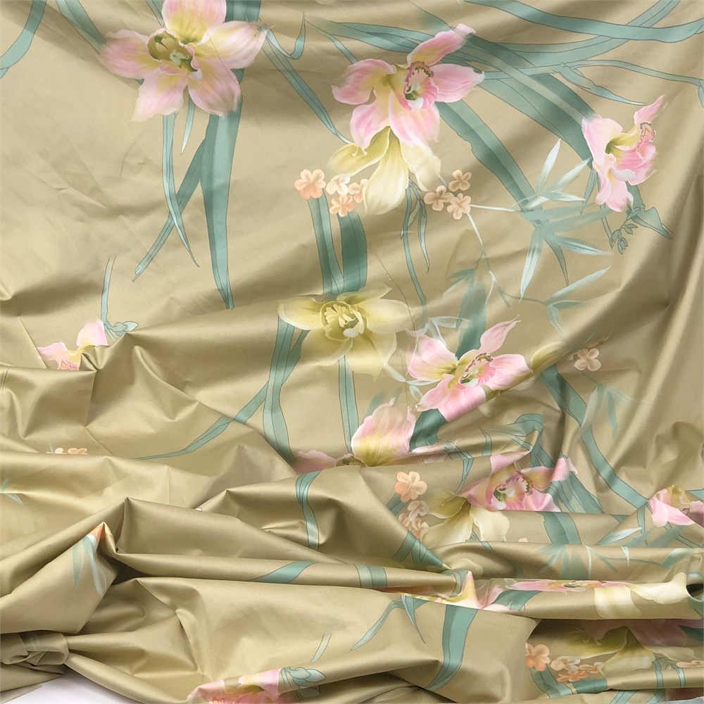Мако-сатин изготовлен из тонкой пряжи. На ощупь ткань очень мягкая с шелковой гладкой текстурой. Дополнительная мерсеризация делает ткань прочной, добавляет стойкий блеск, который не потускнеет после стирки.